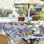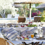 Lunch wordt meestal geserveerd bij het tuin zwembad.