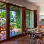 Deze is ca 50m2. Er zijn 2 slaapkamers. Woonkamer met sofabedden. Kitchenette met oven, vaatwasser, magnetron en koelkast. Eettafel met stoelen. Airco. Wasmachine. Aangrenzend een terras met tafels en stoelen welke in de tuin van het landgoed uitkomt.