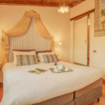 Dit is het grootste appartement van het landgoed en is 170 m2 en ligt op de eerste en tweede verdieping. Bestaat uit 5 queensize slaapkamers met ieder een eigen badkamer, zitgedeelte met openhaard, tweede woonkamer, morderne keuken, eetruimte. Groot overdekt terras met eettafel en beneden een eigen tuin met patio en bbq.