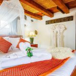 Vrijstaande boerderij met privé zwembad (2,5 x 5 m verwarmd met zon panelen) geschikt voor max 8 personen (incl.extra bedden). Dit is de grootste accommodatie en is 230 m2 groot. Het beschikt over 3 slaapkamers en 3 badkamers , woonkamer en grote keuken met eettafel. Tuin met overdekte lounge met zitgedeelte en ping pongtafel, bamboo hut waarin je kan eten, bbq en ligbedden. Alles is luxe afgewerkt.